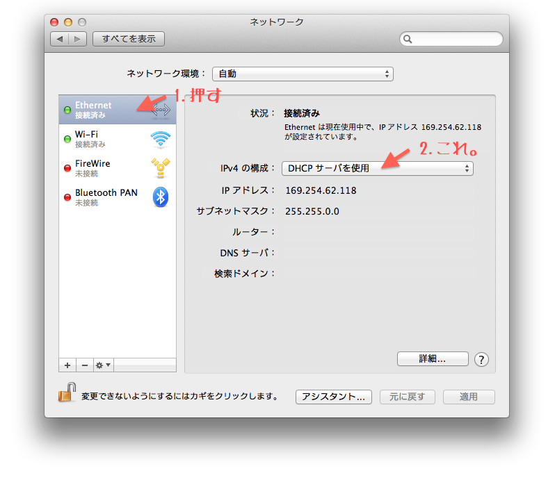 IPはもう固定してるよ、って言う人は項目2へ飛んで下さい。